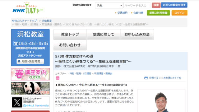 - 【登壇予定】5/30 NHKカルチャー浜松教室にて澤木一貴が登壇|体力づくり講座「体力おばけへの道」