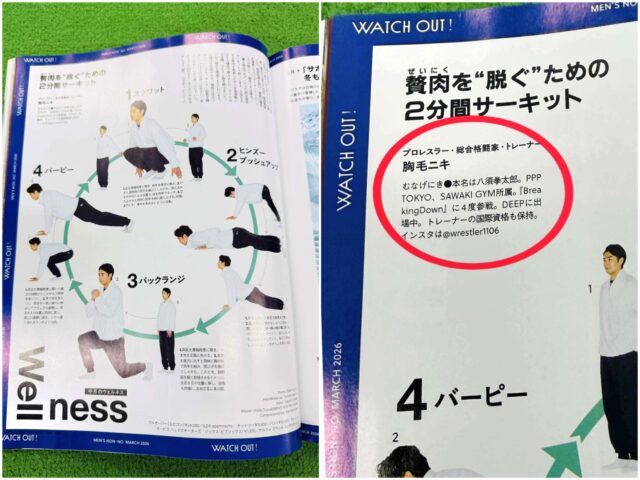 サワキジム高田馬場店 店長でありプロレスラーとしても活躍する八須拳太郎 が、2026年2月9日発売のファッション誌『MEN’S NON-NO(メンズノンノ)2026年3月号』 のウェルネス特集を監修いたしました。
