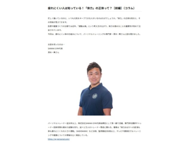 株式会社SAWAKI GYMでは、今後もメディア監修・講演・企業研修を通じて、科学的根拠に基づいた健康・体力づくりの情報発信を行ってまいります。